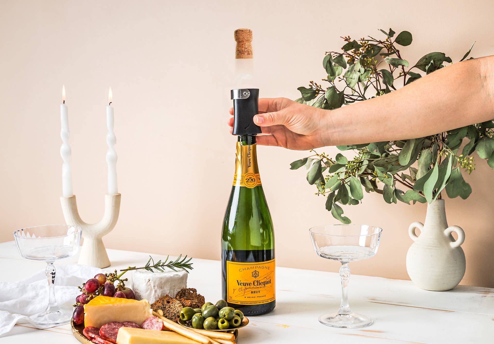Dreamfarm Champop is a champagne cork remover that safely pops and catches the cork, or shoots it straight up.