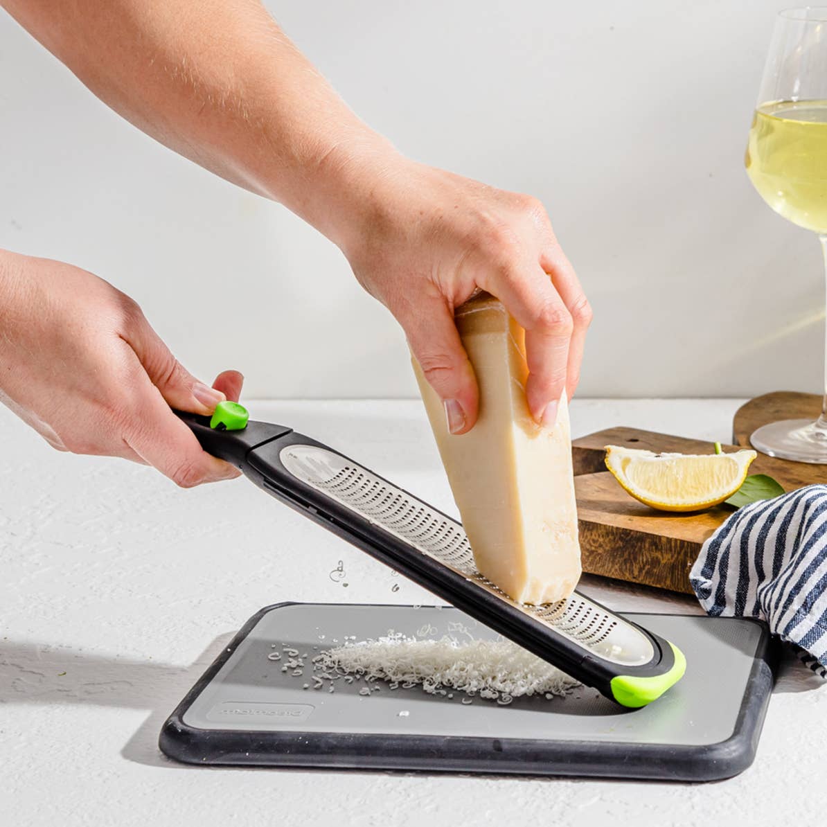 Protective blade cover snaps or slides on for worry-free storage, and doubles as a zest catcher, measuring up to 2 tbsp. Fine 1mm / 3/64" zest. 12.6"L x 2.2"W.