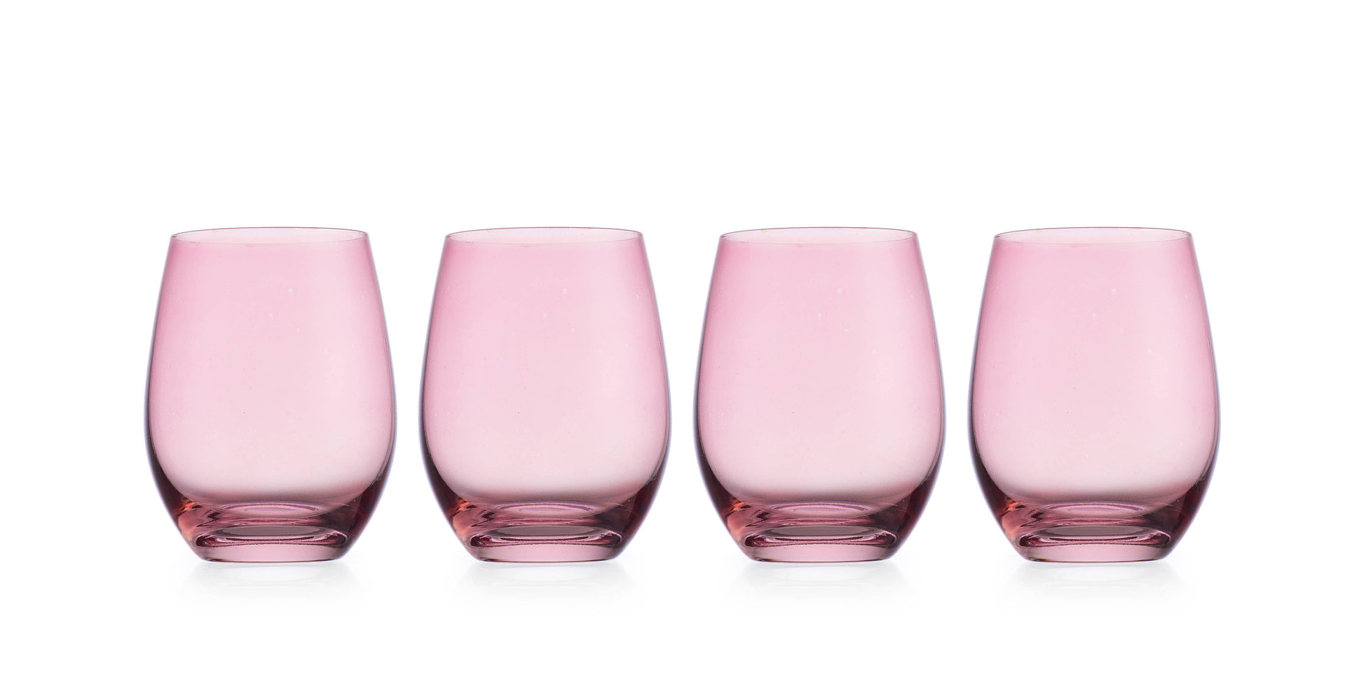 Crafted from exquisitely blown glass, this set of four sparkles with a vibrant pink hue. Its masterfully balanced shape and elegantly exacting rims lend it a luxurious air.