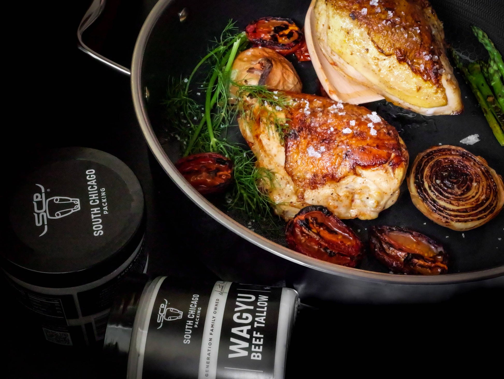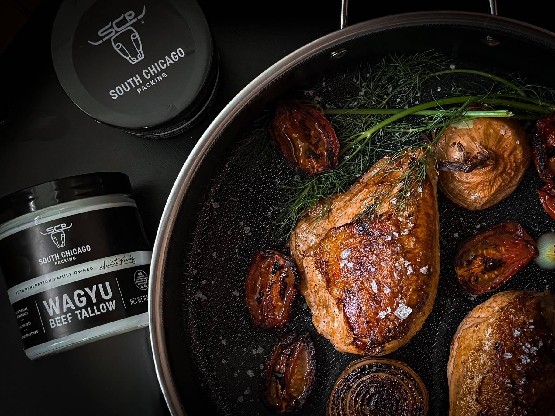 From ranch to table, South Chicago Packing’s Wagyu Beef Tallow is sourced from only the best. This product is 100% premium rendered Wagyu beef fat. It is an easy to grab pantry staple. It upgrades and enhances flavor and richness to your meats, veggies, eggs and much more. Our Wagyu Beef Tallow is a natural cooking fat that is Keto, Paleo, and Whole30 & gluten-free friendly. All of our products support nose-to-tail sustainability.